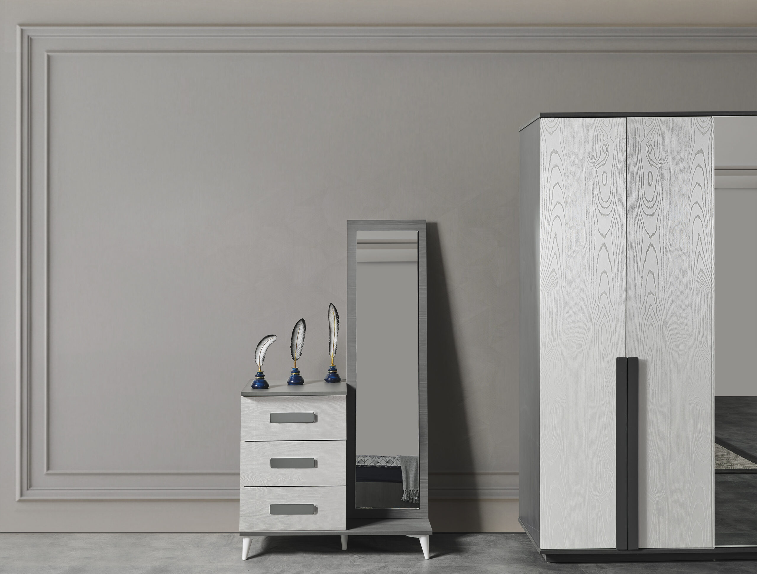 | TAKIM İÇERİĞİ | Bir gardırop,bir şifonyer,bir karyola,bir başlık ve iki komodin den oluşmaktadır. |