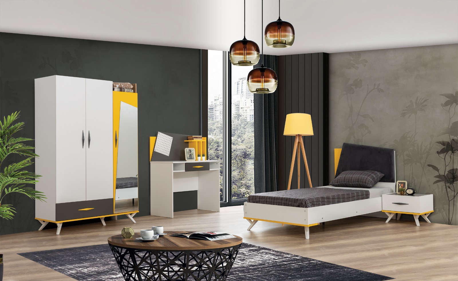 | TAKIM İÇERİĞİ | Bir gardırop, bir çamaşırlık, bir çalışma masası, bir somyalı karyola, bir komodin`den oluşmaktadır. |