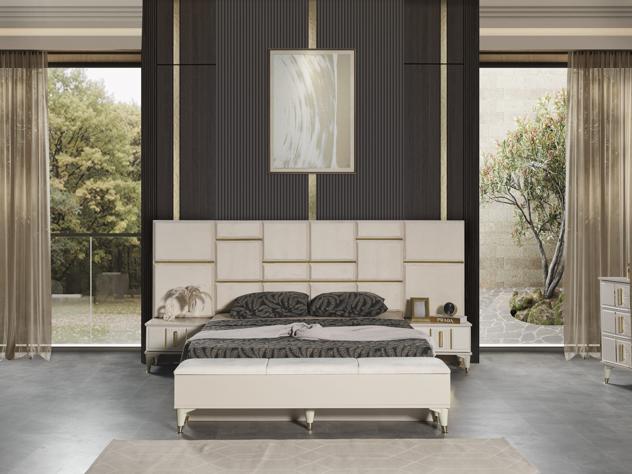 - MODERN TARZIYLA İNCİ YATAK ODASI TAKIMI